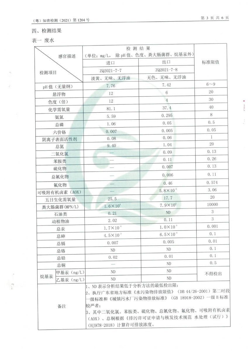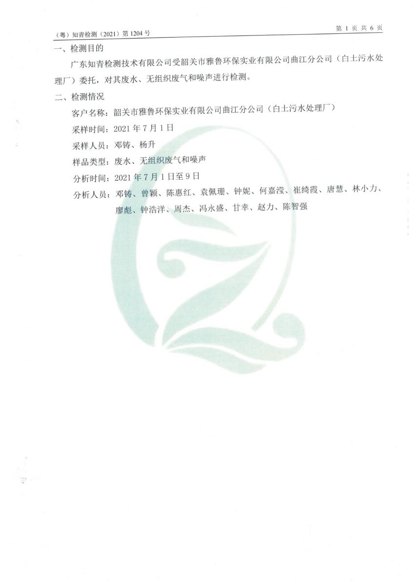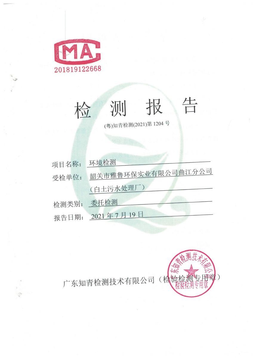 白土污水處理廠2021年7月份檢測報告