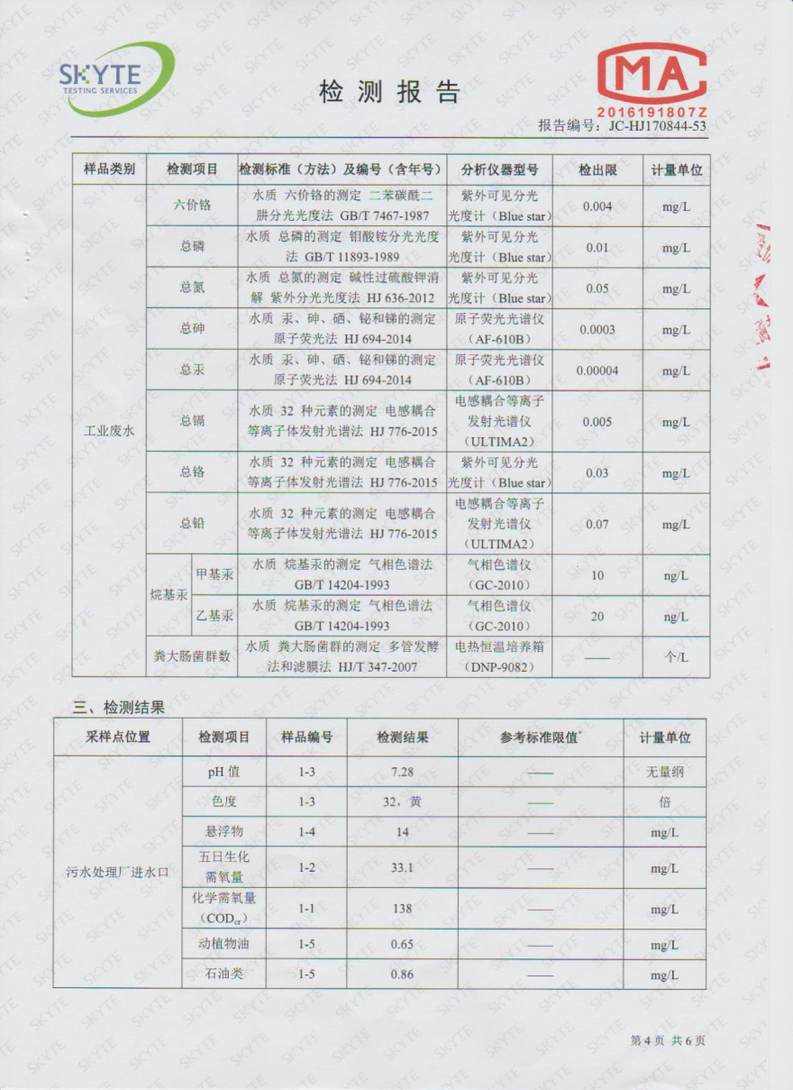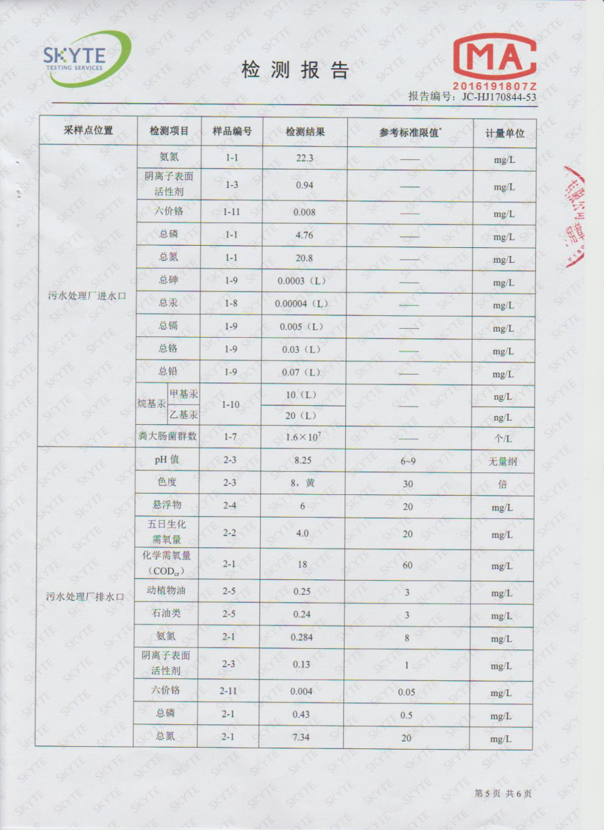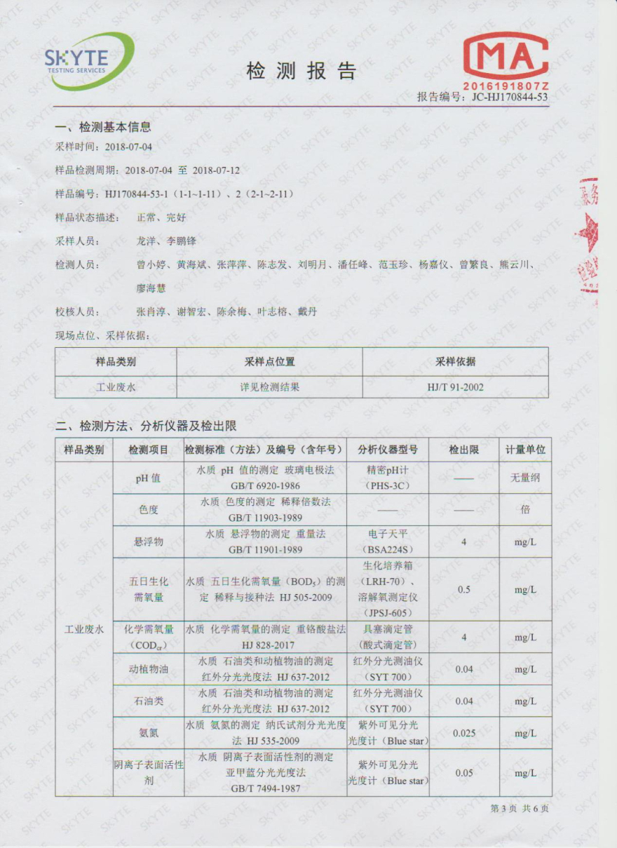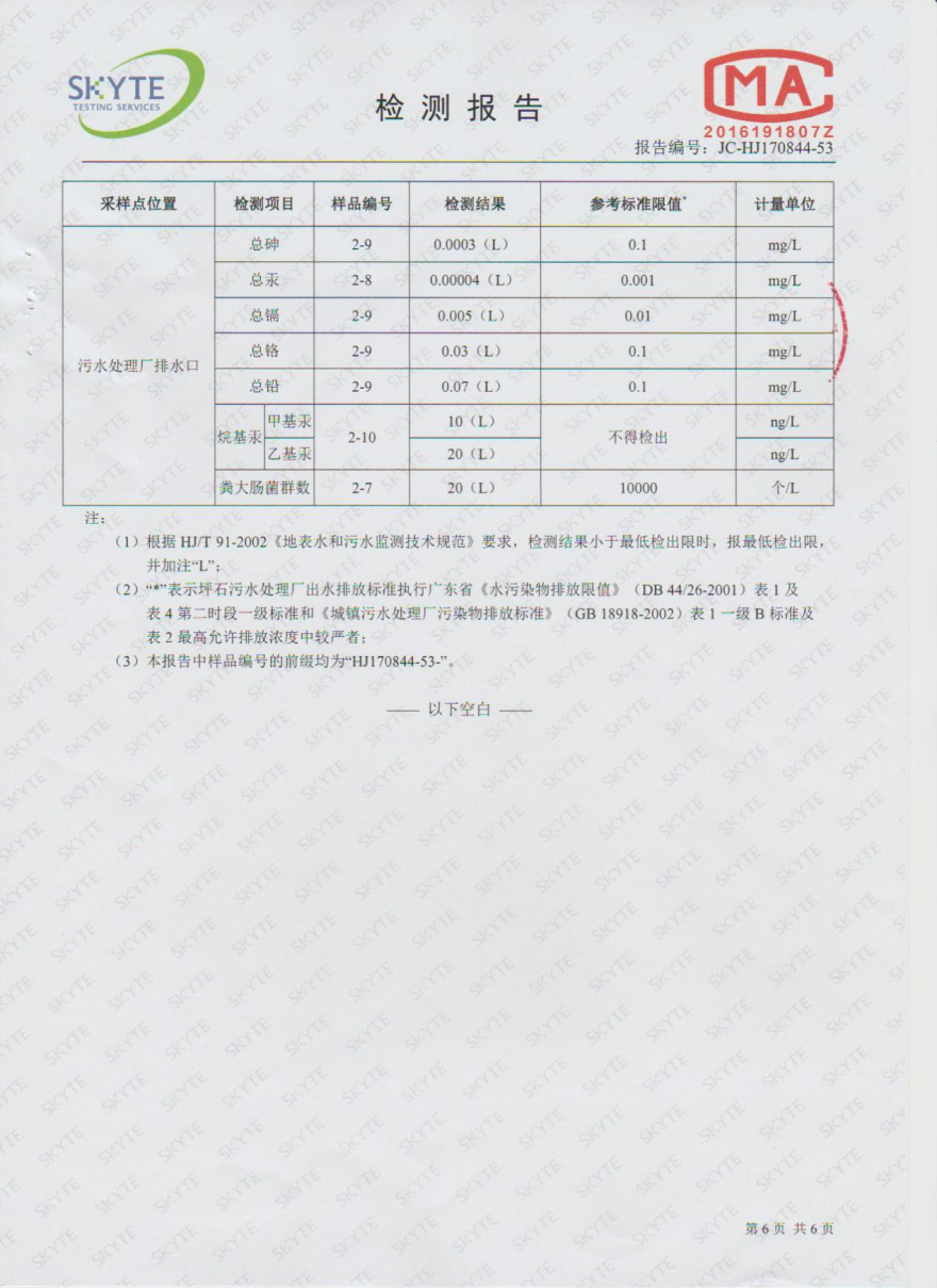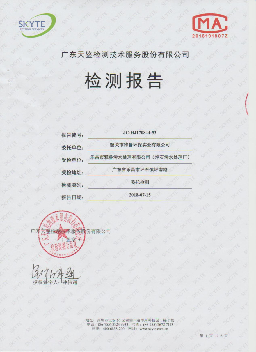 樂昌市雅魯污水處理有限公司第三方監測報告7月