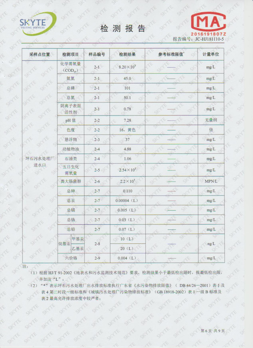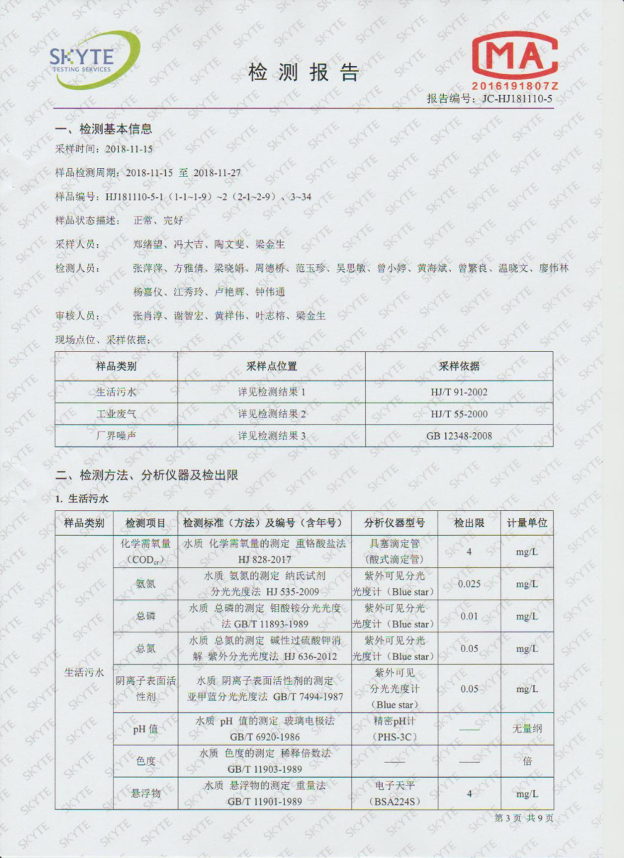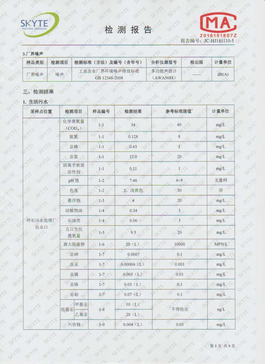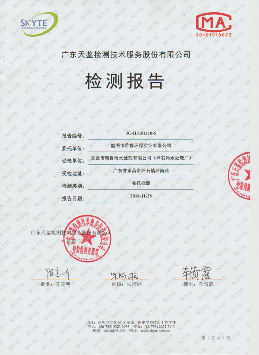 樂昌市雅魯污水處理有限公司第三方監測報告11月
