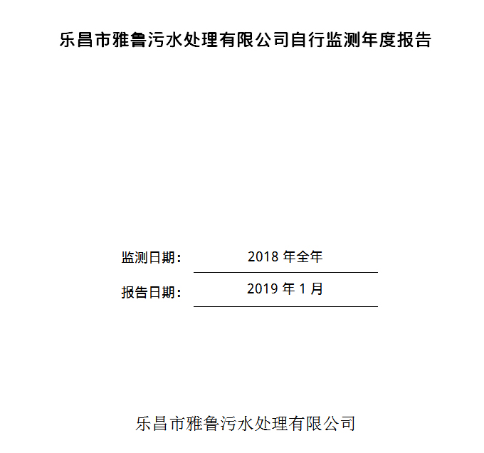 樂昌市雅魯污水處理有限公司企業(yè)自行監(jiān)測年度報告20190102