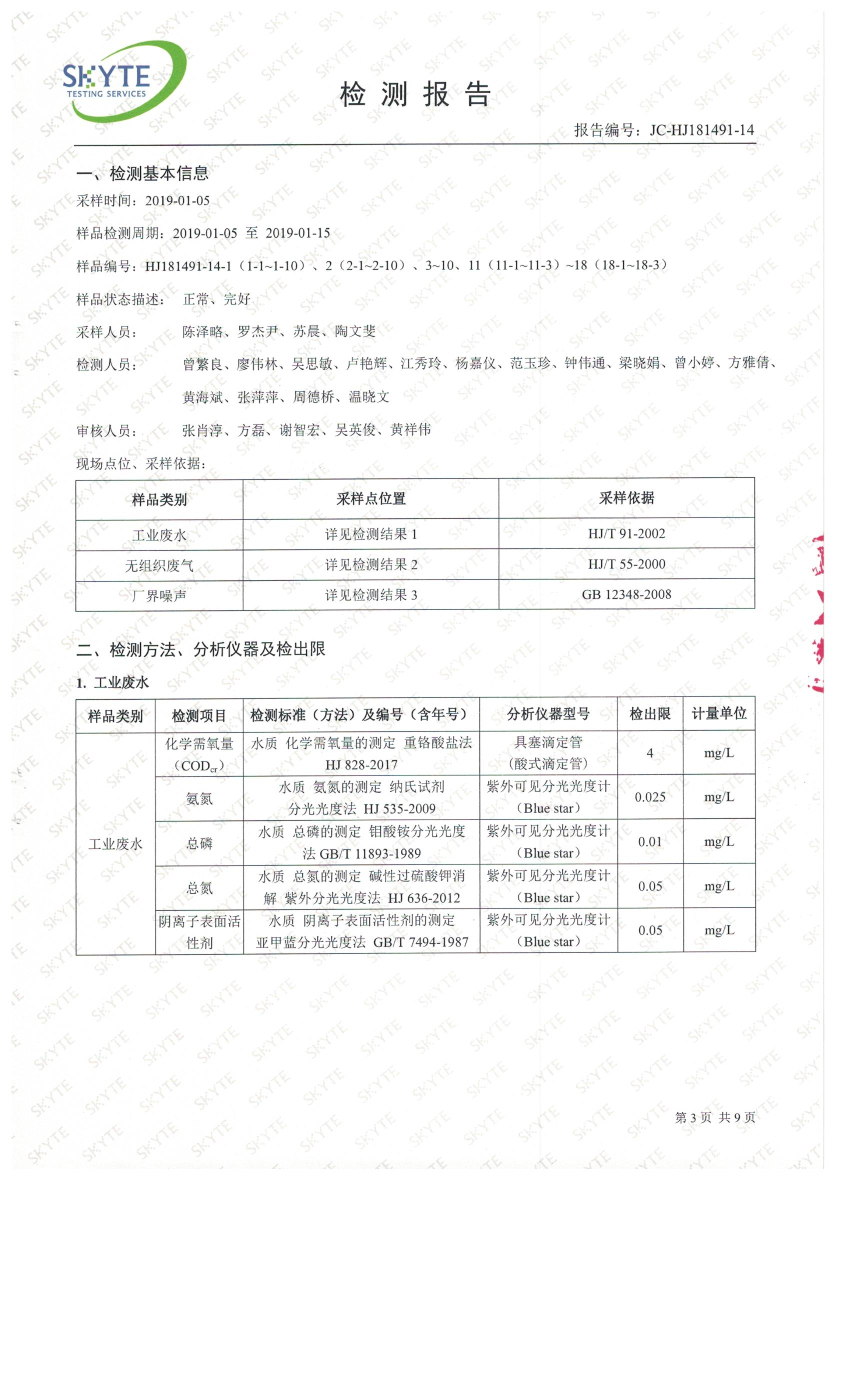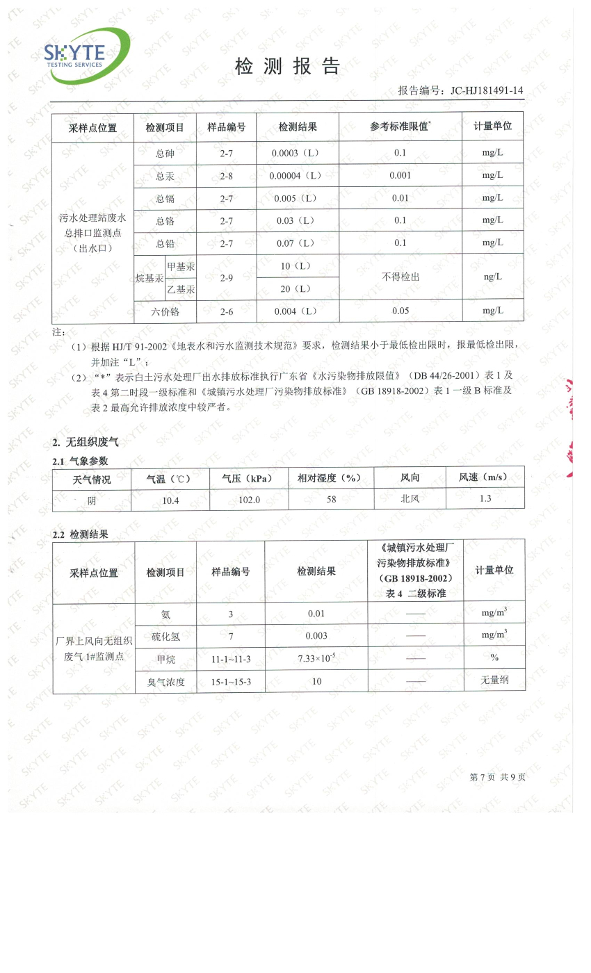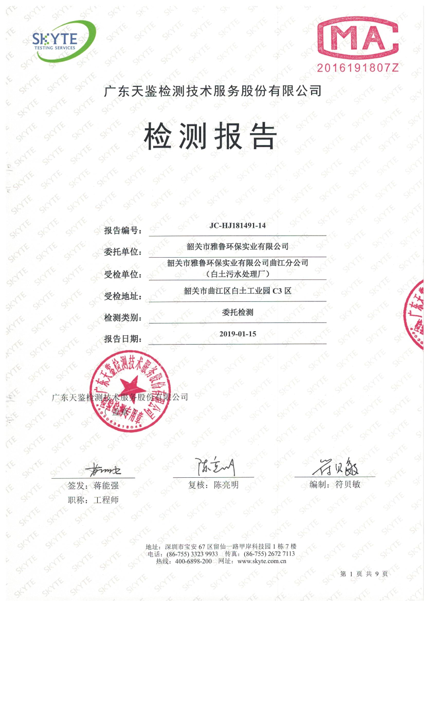 白土污水處理廠2019年1月第三方水質檢測報告