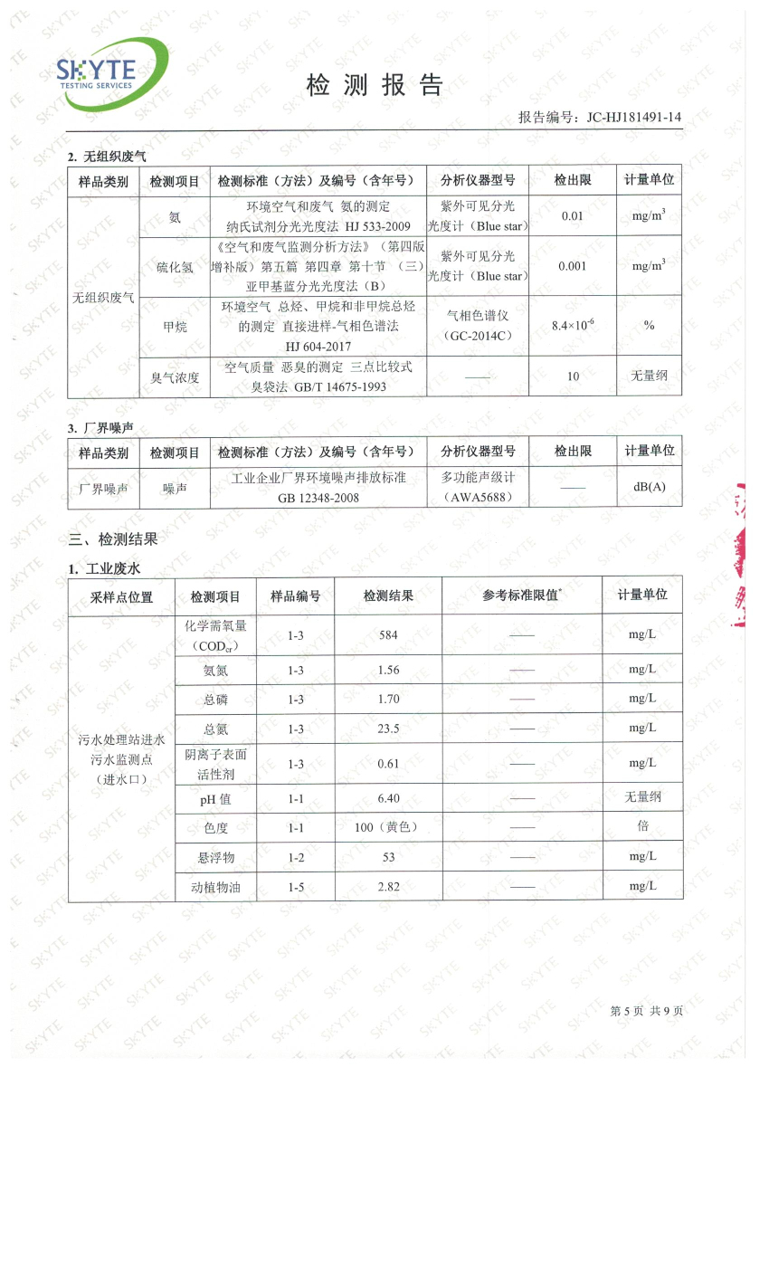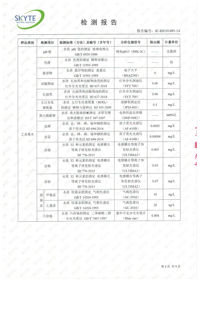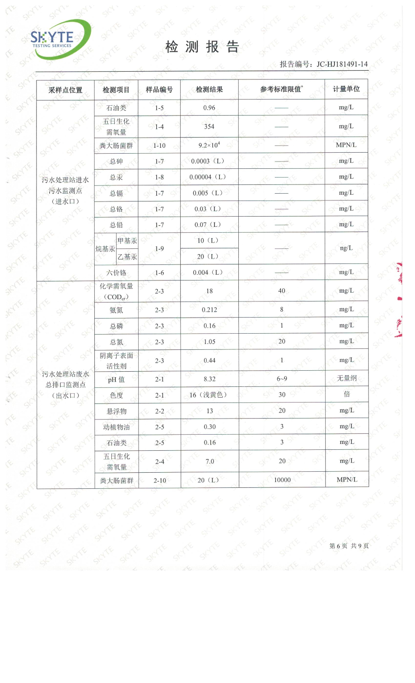 白土污水處理廠2019年1月第三方水質檢測報告
