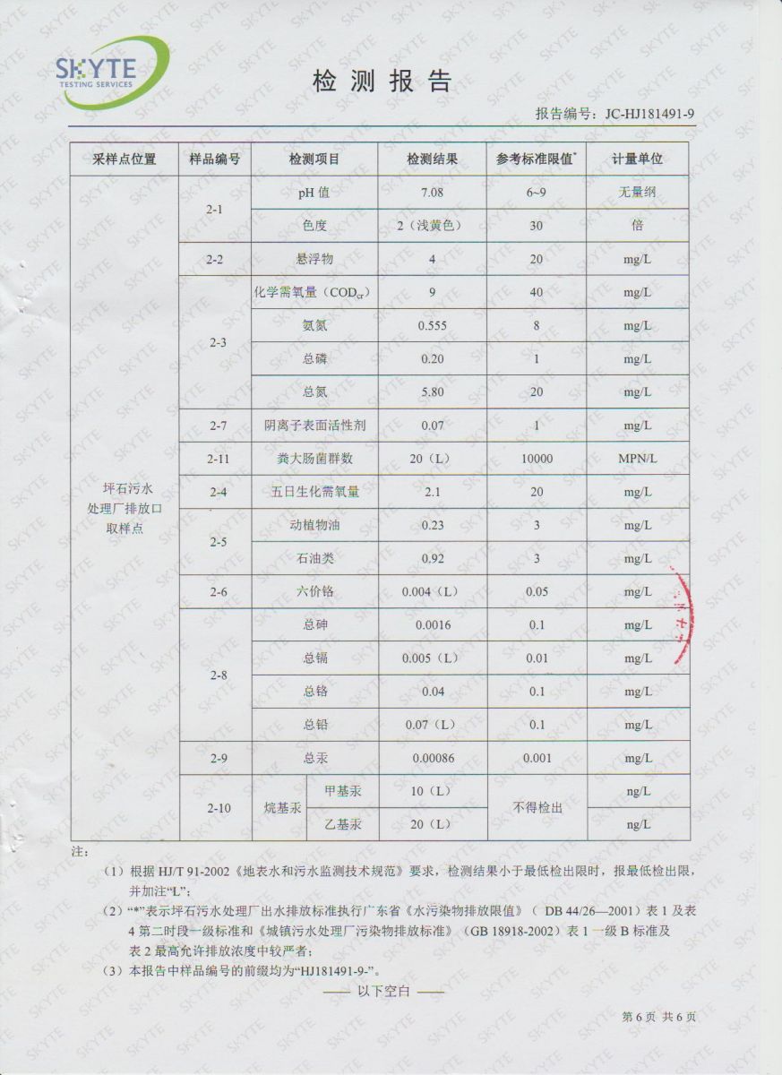 坪石污水處理廠2019年2月份第三方監測報告