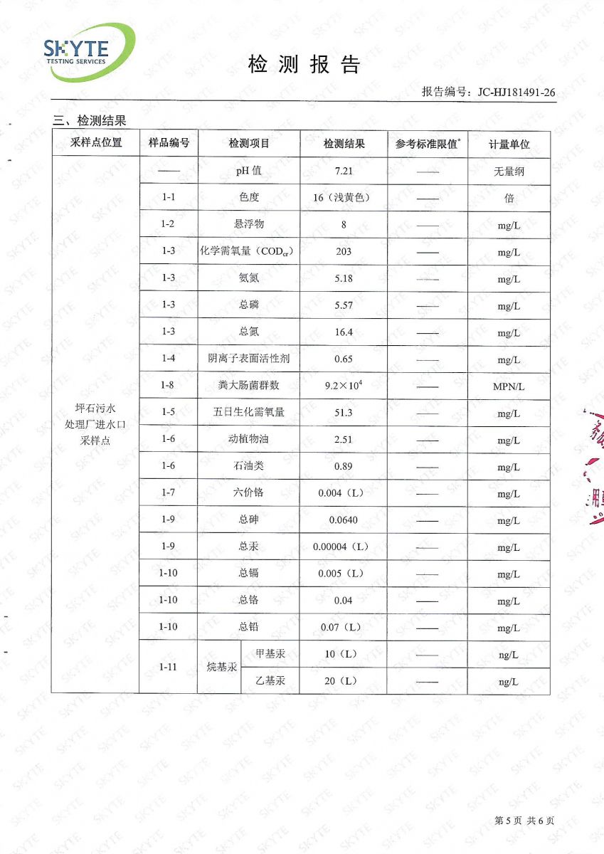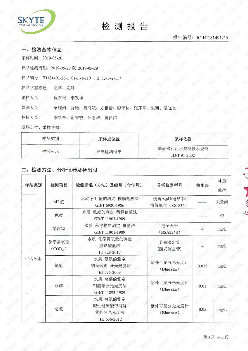 坪石污水處理廠2019年5月份第三方監(jiān)測報告